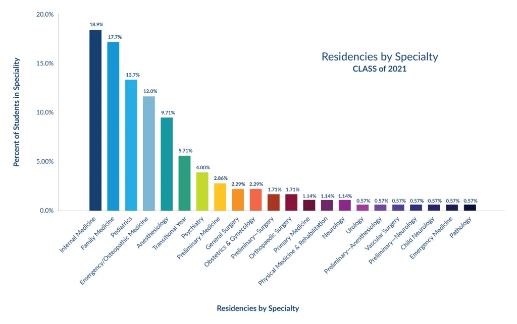 UNE COM graduates have accepted residencies in Anesthesiology; Emergency Medicine; Family Medicine; Internal Medicine; Pediatrics; Neurology; Neuromusculoskeletal Medicine; Obstetrics and Gynecology; Pathology; Physical Medicine and Rehabilitation; Psychiatry; and General, Orthopedic, Neuro, and Vascular Surgery. More details regarding our placement rates can be obtained by contacting our Office of Clinical Education at comclinicaleducation@une.edu.