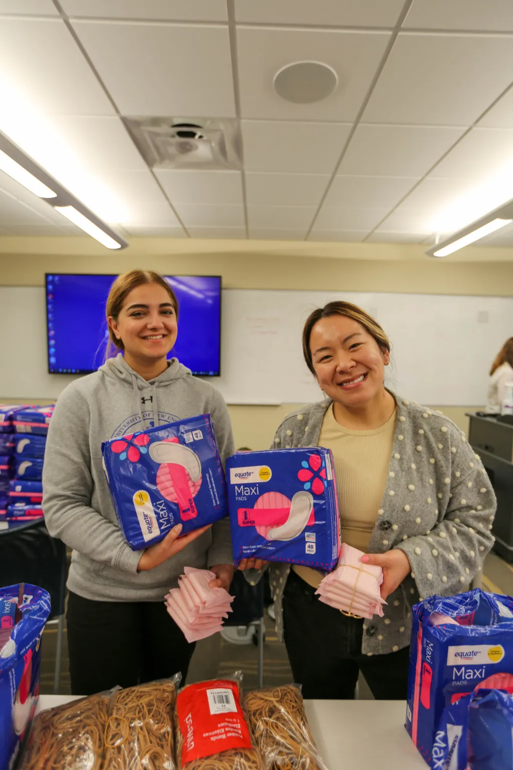 On April 25, over 30 students gathered in a classroom in Girard Innovation Hall to fill bags and boxes full of reproductive health essential items for two local organizations.