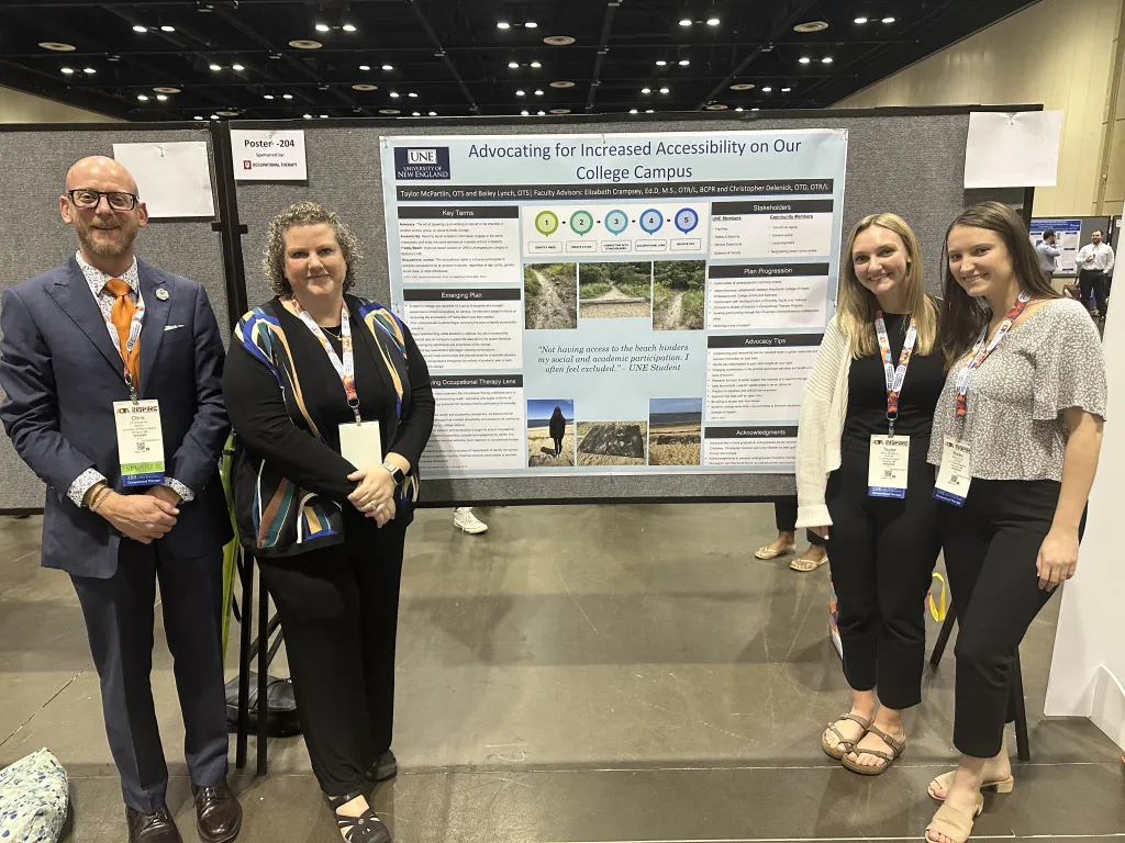 Faculty members in attendance included Kristin Winston, Ph.D., OTR/L, UNE program director and associate professor of Occupational Therapy; Adam DePrimo, Ph.D., OTR/L, assistant professor; Carol Lambdin-Pattavina, M.S.O.T., O.T.D., associate professor; Christopher Delenick, O.T.D., OTR/L, assistant clinical professor; and Elizabeth Crampsey, Ed.D., associate clinical professor and associate dean of Academic Affairs for the Westbrook College of Health Professions.
